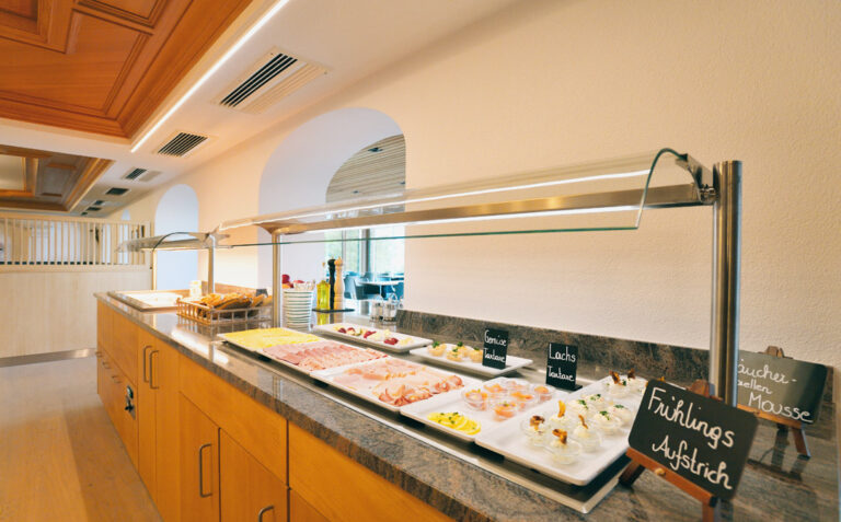 Unser Frühstücksbuffet bietet eine ausgewogene Auswahl für unterschiedliche Vorlieben. Freuen Sie sich auf klassische Frühstücksvarianten mit Schinken, Wurst, Käse und Eiervariationen ebenso wie auf leichtere, gesunde Optionen mit Müsli, frischem Obst, Joghurt und Gemüse. So findet jeder Gast genau das, was zu seinem Start in den Tag passt.